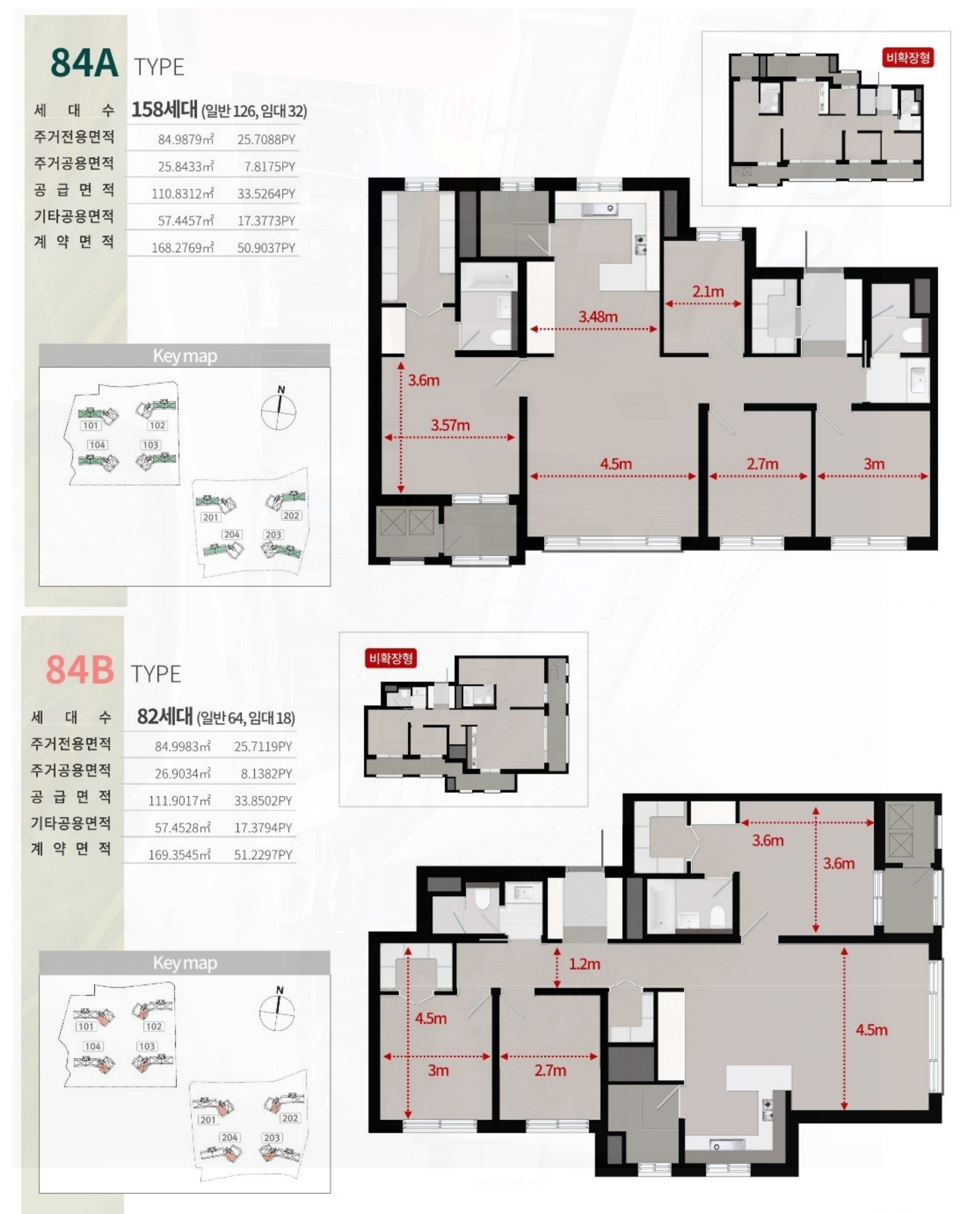 단일면적이라는 점이 가장 큰 관심사이기도 한데요. 판상형과 타워형으로 이루어져 있으며, 가장 대표적인 A, B 두 가지 타입 위에 평면도가 있으니 참고하시길 바랍니다.