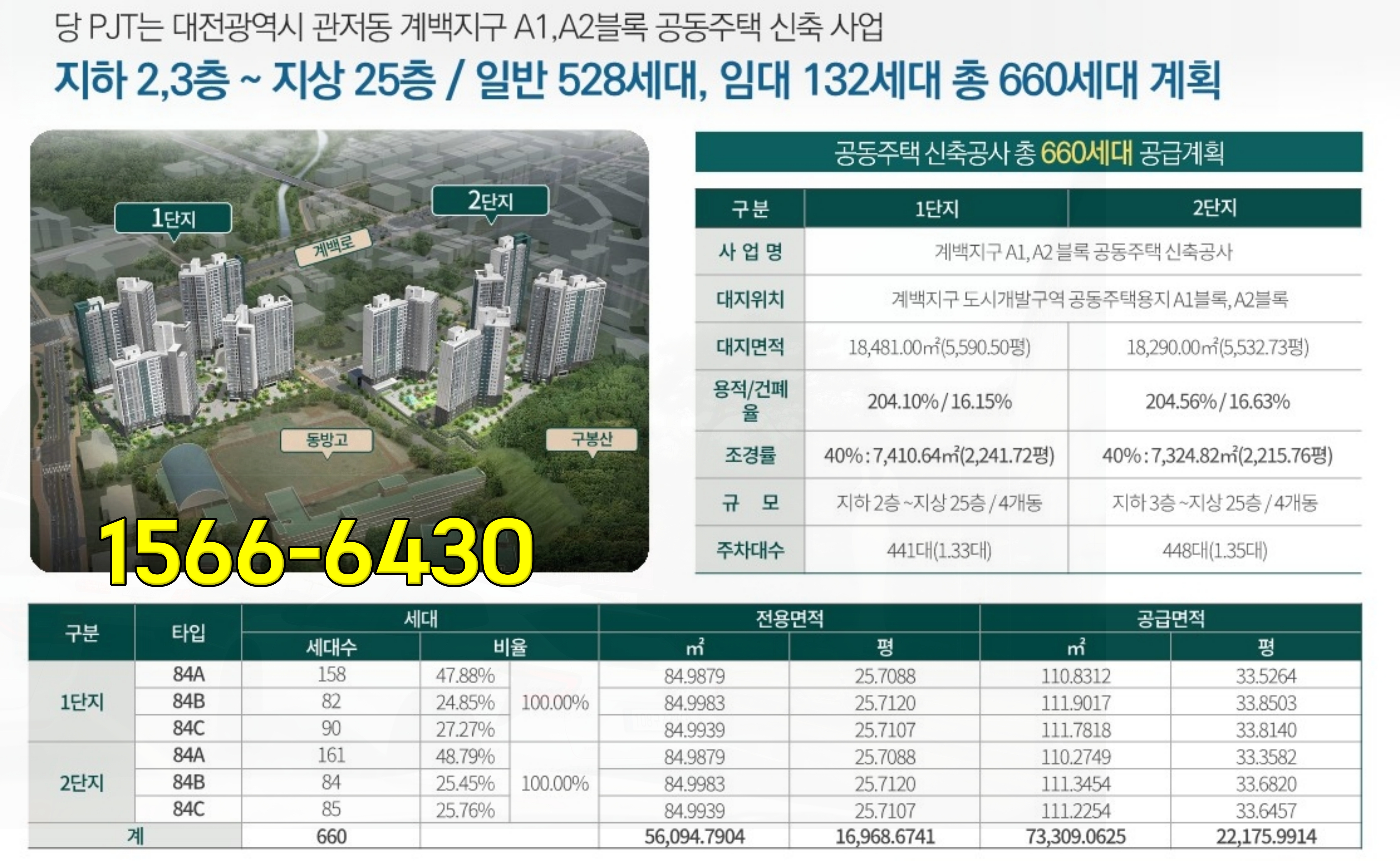 관저 푸르지오 센트럴파크 아파트 신축공사 개요를 보시면 총 660세대로 두 개의 단지가 각각 330세대로 전용 84제곱미터 단일면적으로 구성되어 있습니다. 타입은 세 가지로 각각 4개 동 최상층은 25층으로 설계 시공 중에 있습니다.