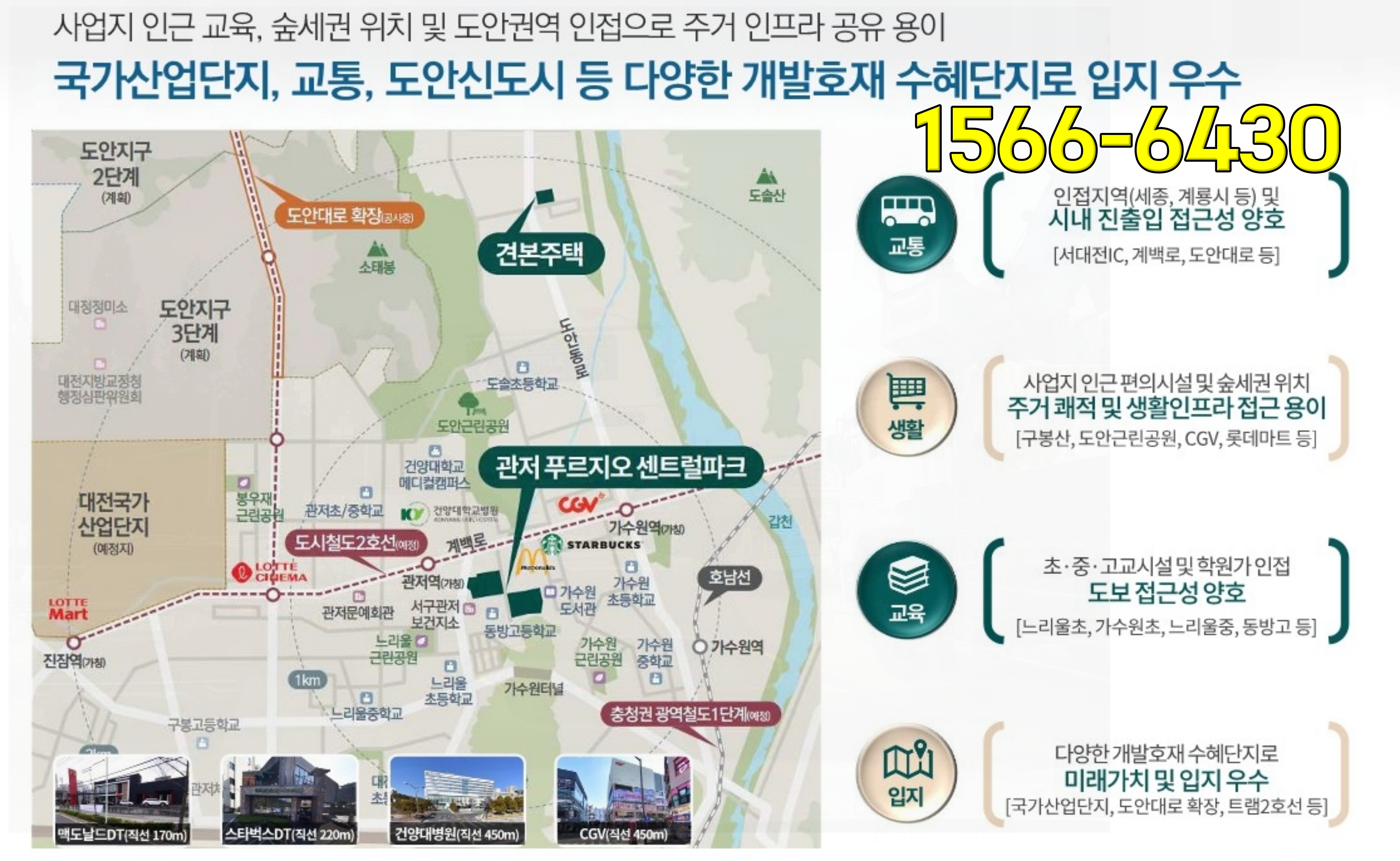 현장은 대전 계백지구 도시개발 사업 부지 내에 위치하며, 신설 예정인 도시철도 2호선 등의 교통 호재가 예상되는 곳이랍니다. 유성 도안대로 확장공사도 진행 중에 있으며, 국가산단 조성과 건양대학교 병원, 대형마트와 영화관 기타 등등 생활에 필요한 다양한 시설이 밀집한 주거지역이라는 점에서 미래 나노 및 반도체 분야의 첨단 산단 조성의 가장 근접한 주거지로 수혜가 상당히 예상되는 곳이기도 합니다.
