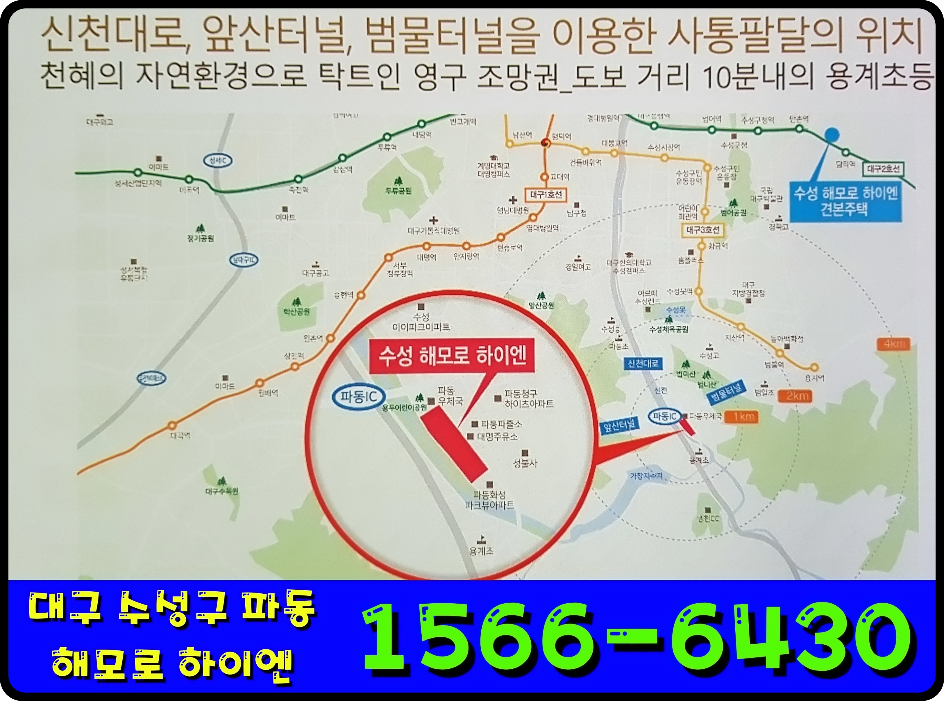 또한 범물터널과 신천대로와 앞산 터널로 반시간 내에 원하시는 목적지로의 이동도 수월하게 가능합니다.